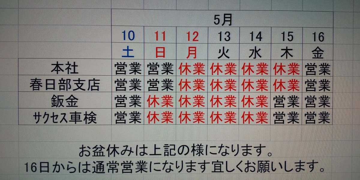 お盆休みのお知らせ