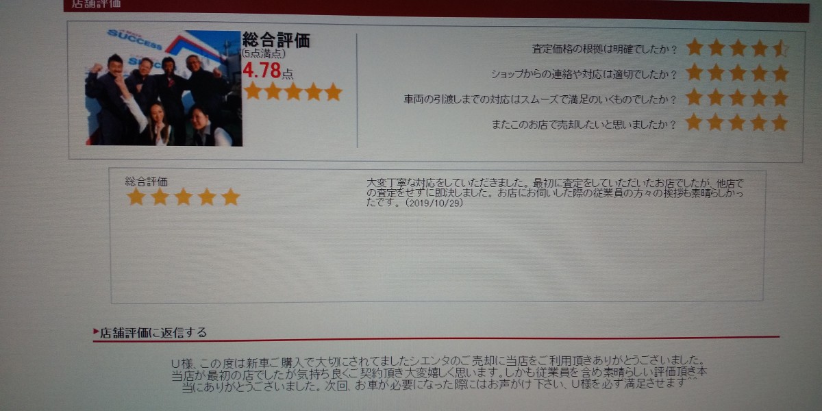 U様、素晴らしい口コミ頂きありがとうございました。シエンタは既に当社展示場にて次のオーナーを待ってます^^