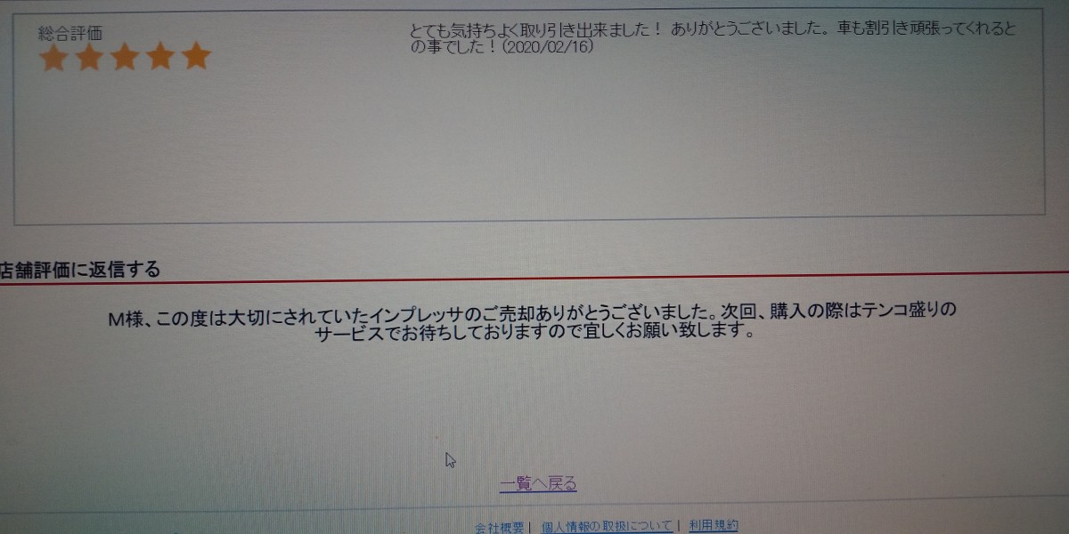 そのM様よりの口コミです!お近くですので次のお車は是非お付き合いさせて下さい!大切にされていたインプレッサのご売却ありがとうございました。